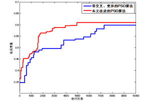 为了更直观看出加入聚类算法的优势,本文对交叉粒子群算法和聚类融合交叉粒子群算法收敛情况进行比较,结果如图9所示(粒子数为3000,迭代次数为10000,聚类数为10)。