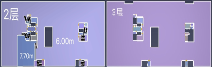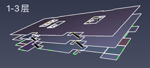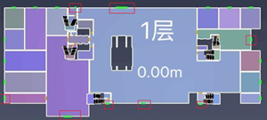 根据建筑图纸上的参数设置楼层分别为0m、6.0m、7.7m(第二层的错层)、11.1m、总计三层。参照导入的CAD文件作为模板,定义地板、门(内门和出口)、墙、楼梯等。为了近乎真实模拟疏散情况,地板仅定义人群可活动的区域,电梯、内墙障碍物等在模型中不给予定义。各房间的墙、各房间的面积大小、门的宽度以及楼梯的设置完全依照建筑设计图建立。考虑到真实性,第二层和顶层的错层也设定了不同的相对高度,并用楼梯连接相连楼层。