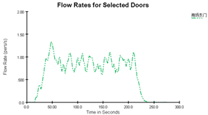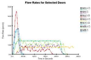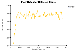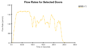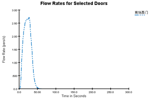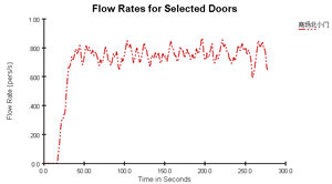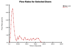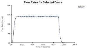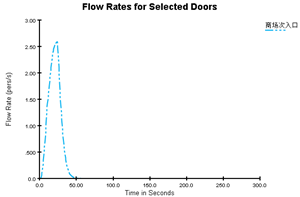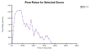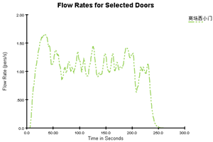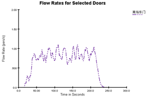 由于商城中人员密度大,疏散速度与路径和门的大小有较大关系,因此我们用Pathfinder提供的出入口流通率的数据进行研究。