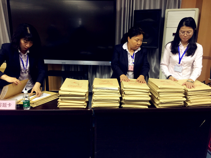 考试恰逢阴雨天,考生均能按时到场,认真作答。在考前会上,考试工作领导小组对考场秩序维护、考务人员的相关要求、考生考试提醒和考风纪律、答题卡填凃规则、收卷归档等各个环节做出了细致安排,考试过程中监考人员各司其职,尽心尽责,大家一起克服了天气的影响,保证了考试的圆满完成。