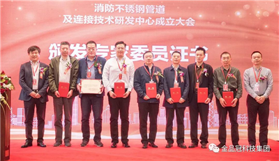 消防不锈钢管道及连接技术研发中心是由中国建筑学会建筑给水排水研究分会、中国城镇供水排水协会建筑给水排水分会批复成立的科研创新中心,经过几个月的精心筹备,正式在金品冠科技集团有限公司正式成立挂牌。