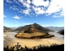 长江第一湾位于云南省西北部的丽江市石鼓镇与香格里拉县南部沙松碧村之间,海拔1850米,距香格里拉县城130公里,有公路直达。万里长江从“世界屋脊”——青藏高原奔腾而下,巴塘县城境内进入云南,与澜沧江、怒江一起在横断山脉的高山深谷中穿行形成了“三江并流”的壮丽景观。到了香格里拉县的沙松碧村,突然来了个100多度的急转弯,转向东北,形成了罕见的"V"字形大弯,“江流到此成逆转,奔入中原壮大观”,人们称这天下奇观为“长江第一湾”。