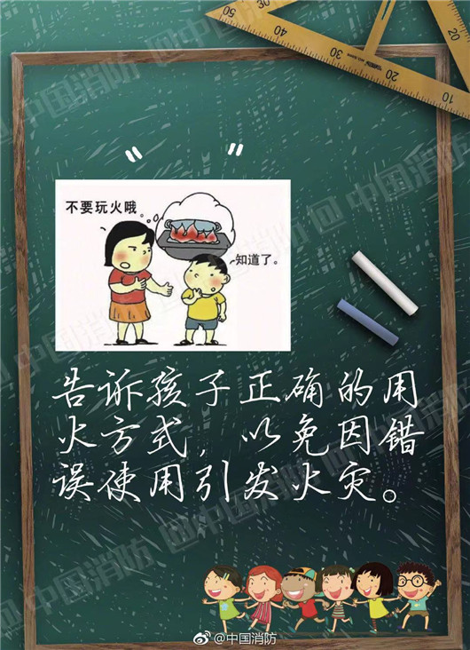 孩子,是家庭最宝贵的礼物,谁也不想看到孩子的世界受到火灾的威胁。无论是开学还是放假,家长一定要做好孩子的消防安全教育,让他们远离火的危害。