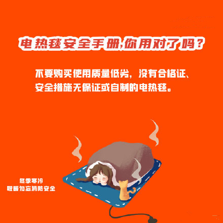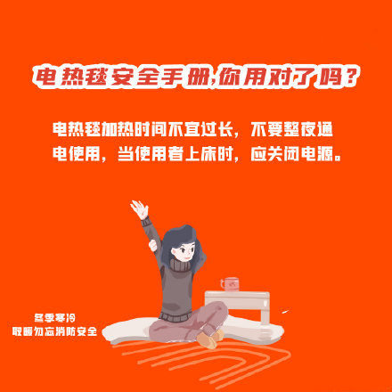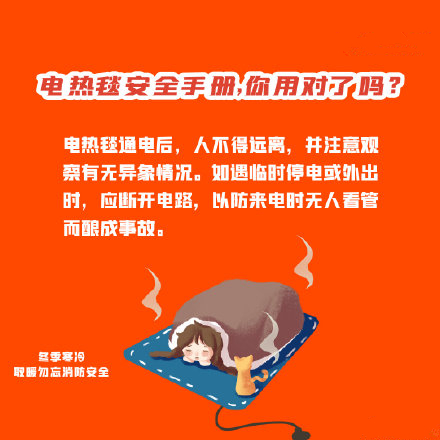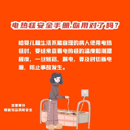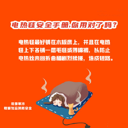 天气逐渐越来越冷,居民赶紧用起电热毯取暖设备,但随之而来的是各类安全隐患。你知道如何保证安全与温暖兼备吗,戳图了解安全注意事项!