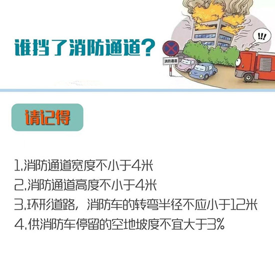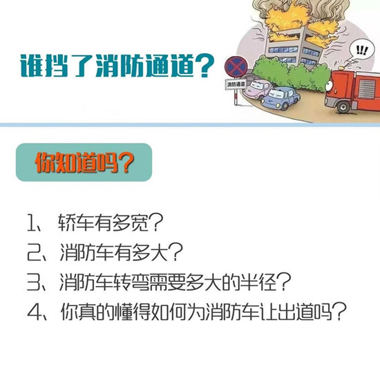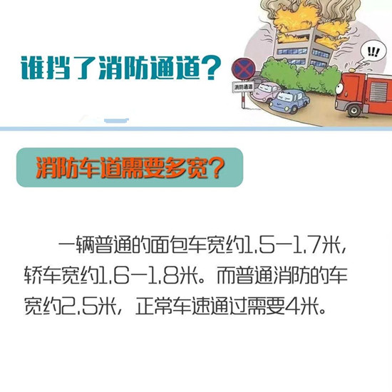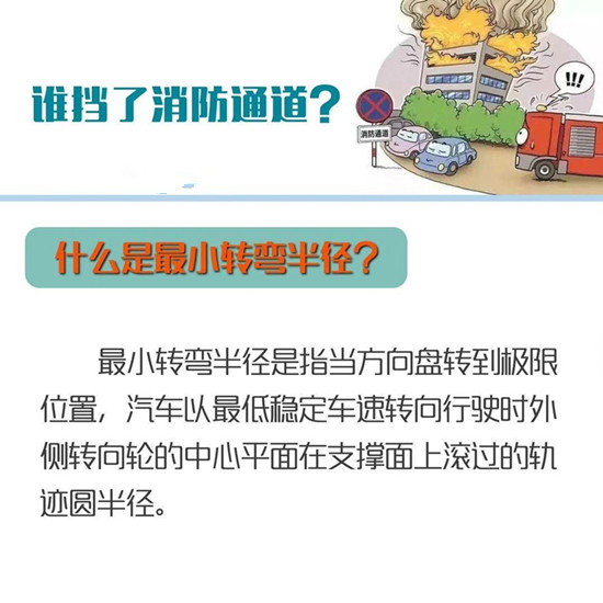 消防车有多宽有多高有多长?消防车转弯半径需要多大?你真的懂得如何为消防车让出通道?车位虽难找难停,但请记住,你占用0.1米可能是卡主消防车的整个通道。
