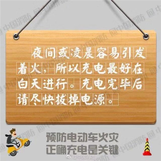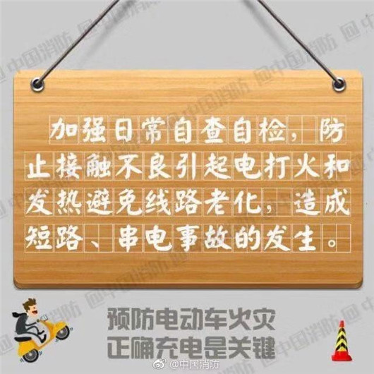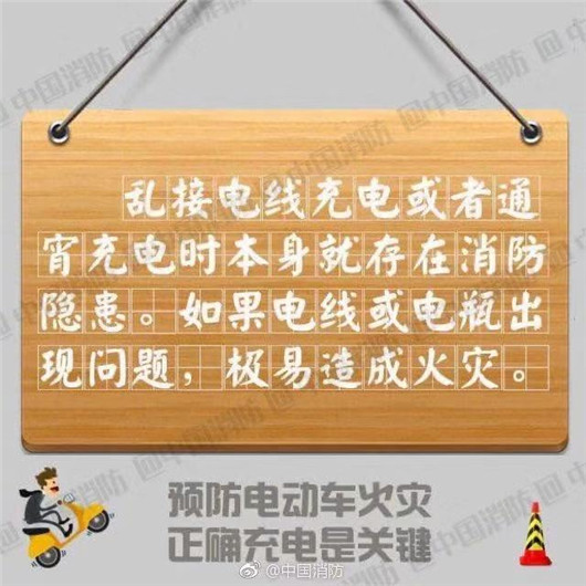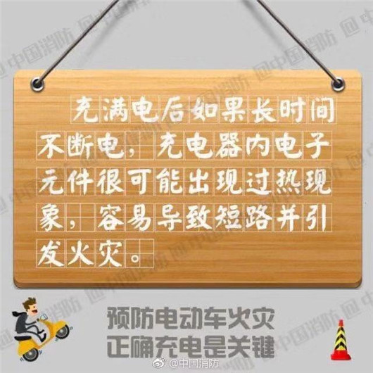 近年来,全国各地频繁发生电动车起火事故,造成财产损失和人员伤亡。提醒您,预防电动车火灾正确充电!