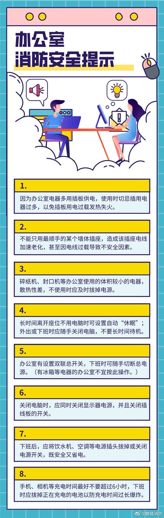 办公室是人员集中的公共场所,电器设备多加上人员流动大,很容易产生消防安全隐患,稍有不慎便会引发火灾事故,掌握以下几点消防知识,让你的办公室更加安全!