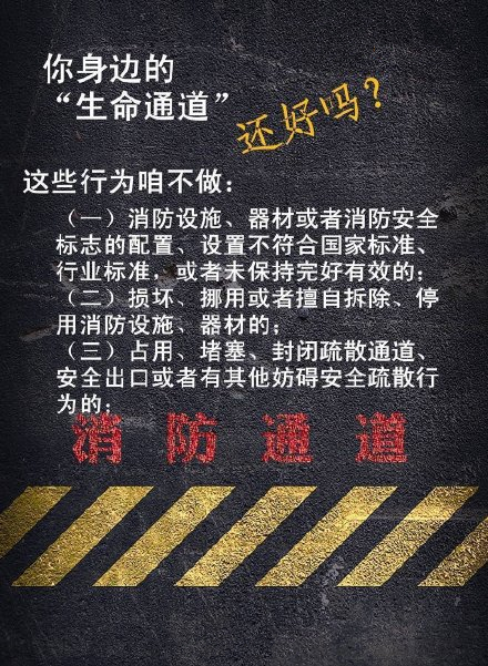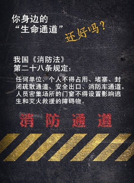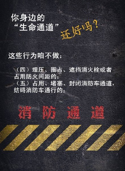 社区、医院、商场、写字楼等的消防通道应该符合标准,因为它是保护大家的生命财产安全的“生命通道”。掌握以下知识,让我们的“生命通道”更通畅!