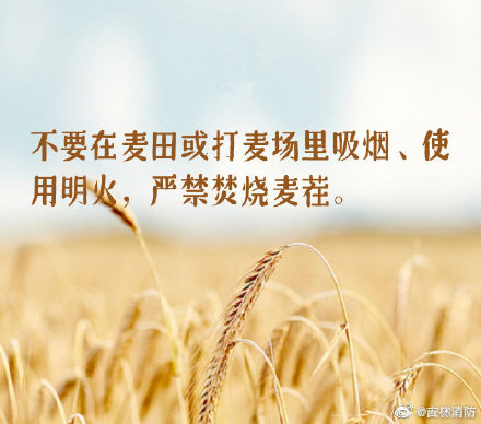 麦收季节,农民朋友尽享丰收的喜悦,可是,风干物燥的麦收季节,也是火灾易发和多发的季节,消防安全问题也就成为了重中之重。提醒广大农民朋友,在收获喜悦的同时,也要注意麦收防火!