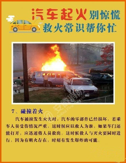 车辆“火”了?万一发生,望你勿急。那么汽车着火都有哪些情况呢?汽车着火时针对不同的情况都有哪些扑救方法呢?该怎么逃生呢?