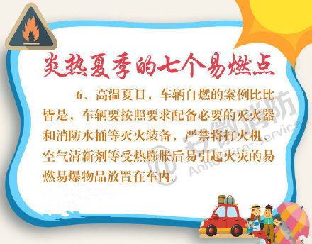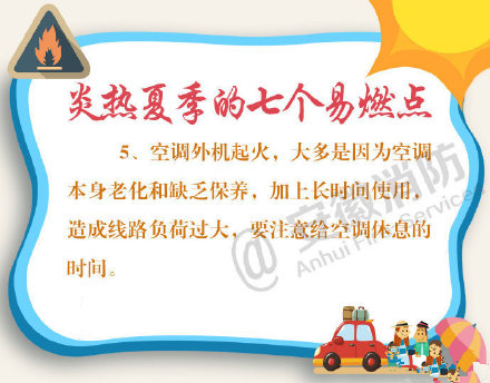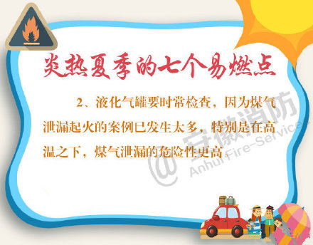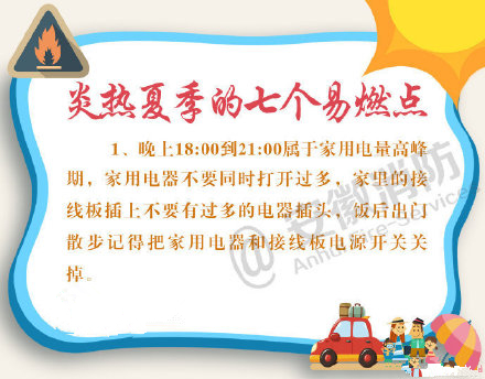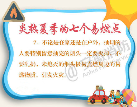 夏季高温,随着气温持续攀升,也是各类火灾事故的高发阶段。提醒广大市民,小心身边的七个最易着火点,严防火灾的发生。