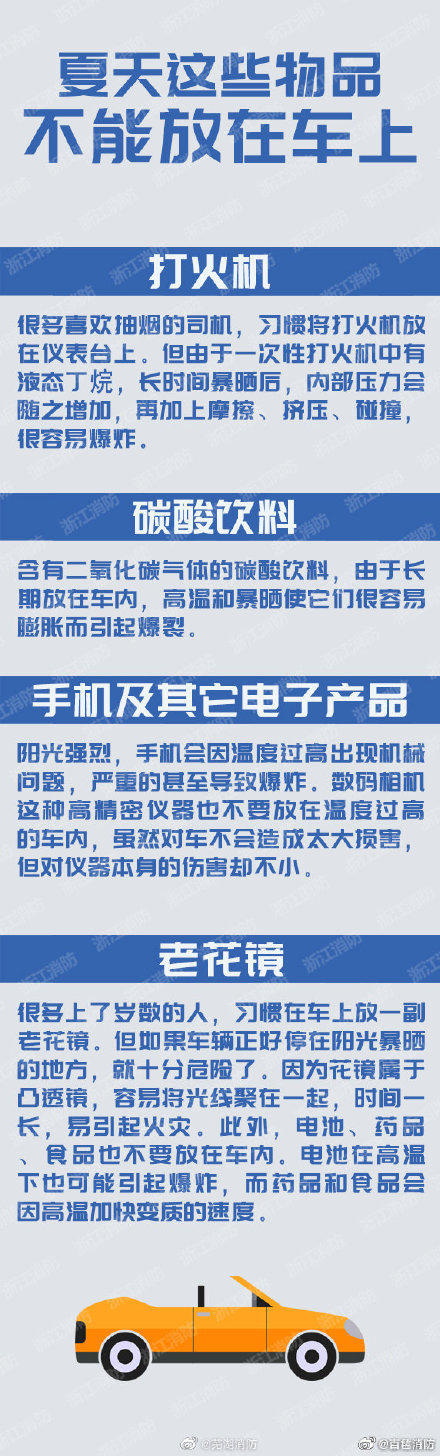夏天,汽车难免在烈日下暴晒。一些平时常用的东西,在高温作用下可能引起爆炸。