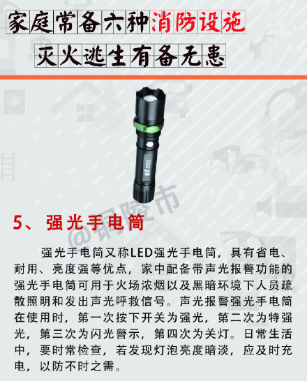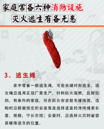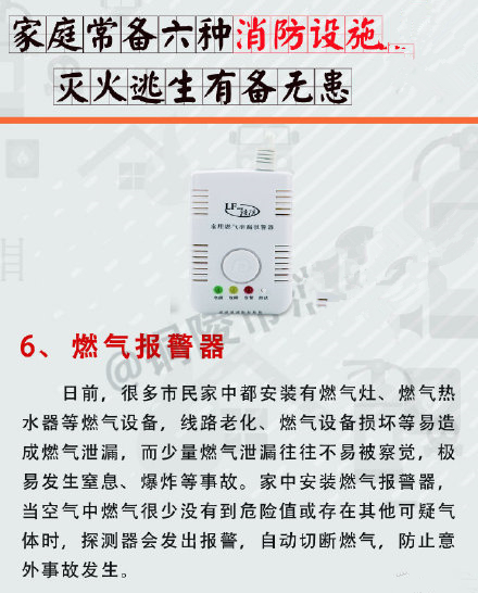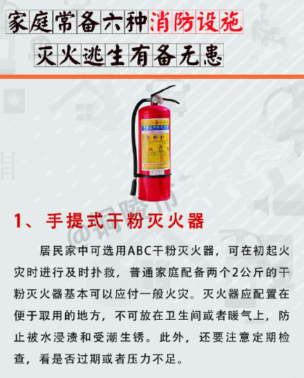 不少市民家庭消防意识淡薄,家里大多没有配备消防器材,发生火灾时也不知道如何处理,尤其是当前大部分家庭居住在高层住宅小区,一旦发生火灾,逃生施救困难。家中常备六种消防器材,可帮助市民在火灾发生时灭火、逃生,有备无患。