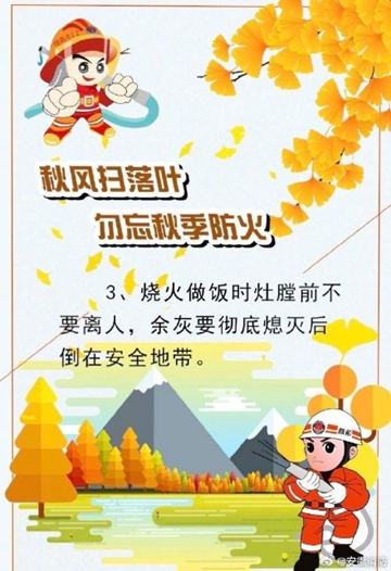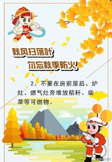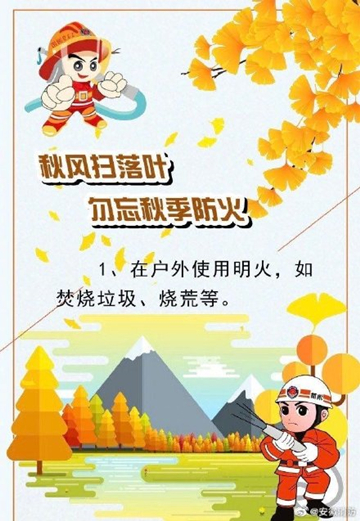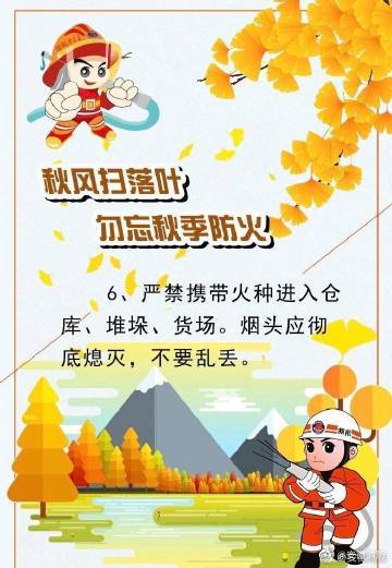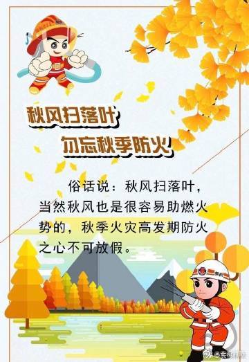 天气越发凉了,两旁的树叶已悄然飘落,带着对这个季节的无限留恋。俗话说秋风扫落叶,但秋风也是易助燃火势的,秋季,防火之心不可无。