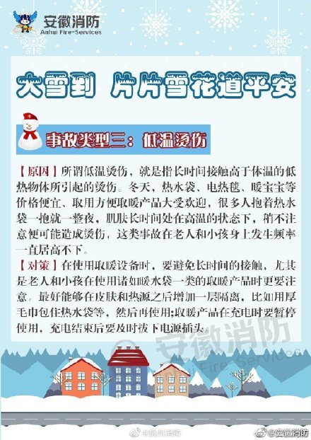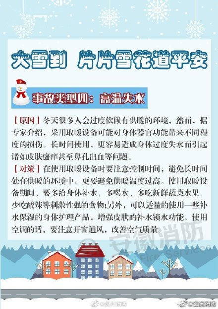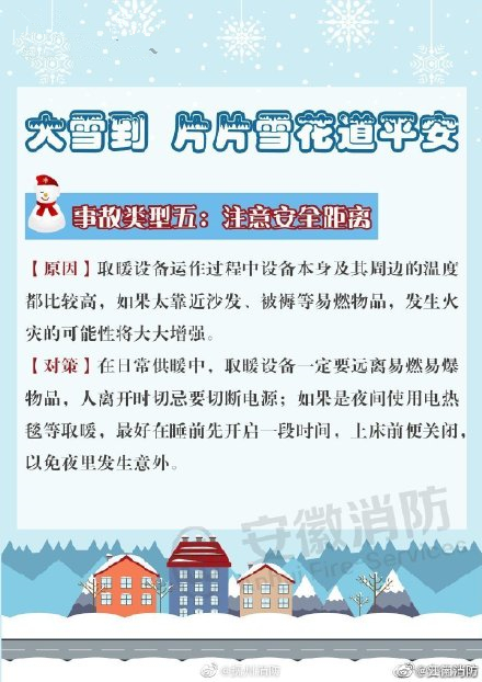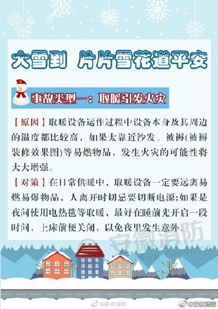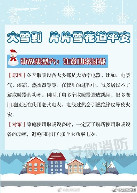寒冬生活中频繁、长时间的使用家用电器,稍有不慎,极易发生火灾,谨慎用火、安全用电,取暖设备、煤气使用,都需当心哦~