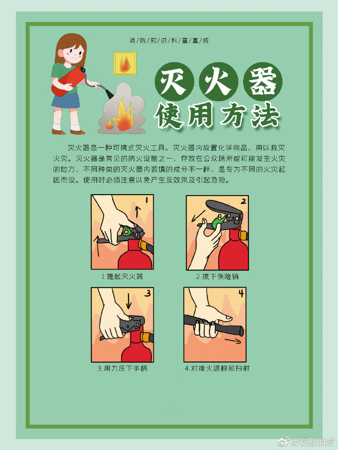 火灾发生初期,如能正确使用灭火器,就能将火灾消灭在初起阶段,从而避免重大损失。那么具体怎么做呢?