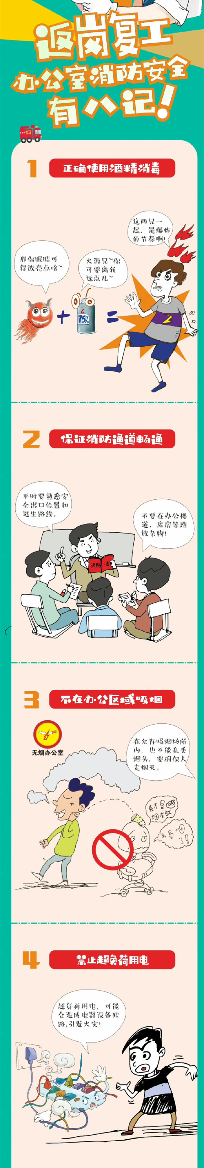 节后上班第1天,办公室用电行为增多,火灾风险也相伴而生,在做好防疫复工的同时,上班族们也要时刻关注办公室消防安全哦!