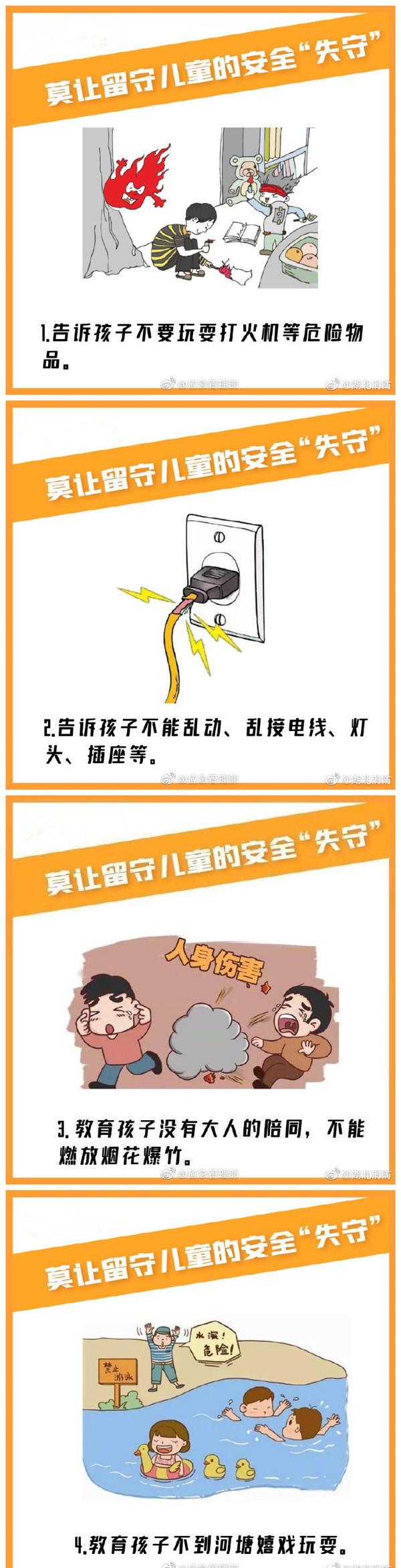 家长外出打工,儿童安全如何保障?父母要采取电话、视频等方式对孩子开展远程“安全教育”,提高其安全意识。关爱留守儿童,守好“安全防线”!