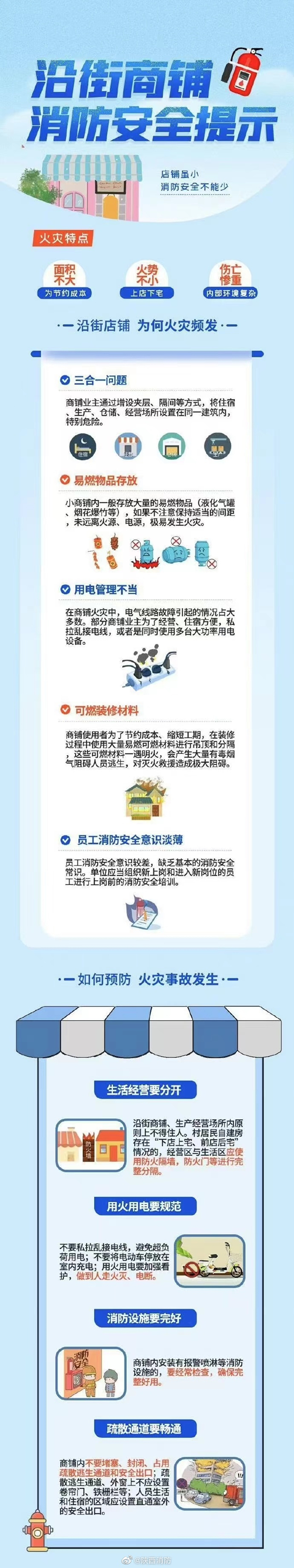 店铺对外经营,搭建夹层住人,前店后宅、下店上宅,通天楼梯、没有防火墙……这样的情景在沿街铺面尤为常见,看似普通平常,引发的火灾事故却屡见不鲜,沿街店铺的消防安全知识,快收藏学习。