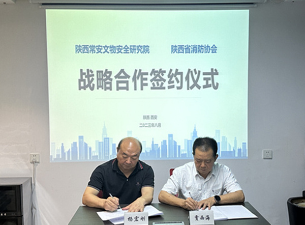 8月28日,陕西省消防协会与陕西常安文物安全研究院(以下简称“文安院”),就探索解决文物建筑消防安全防护等问题,签署了战略合作协议。协会会长贾西海、文安院荣誉院长杨宏刚等相关人员参加了签约仪式。