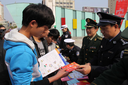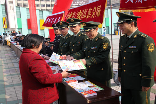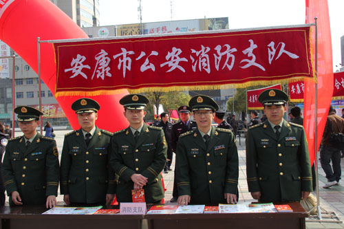 3月25日,按照市委政法委、市综治办统一安排部署,安康支队会同市司法、工商、文广、林业、公安、驻安武警部队等十余部门在市中心广场举行2014年安康市综治暨平安建设宣传月活动。支队借宣传月平台集中开展了消防宣传活动,支队政委姚军、防火处长牛军强参加此次活动。
