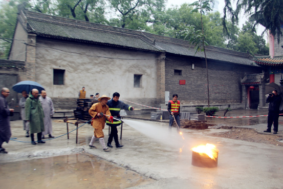 随后,相关技术人员分别对油盆火和柴堆火,在寺院的空地上进行了灭火演示。捐赠方技术人员还为寺院僧人作了详细的操作指导,不少僧人和参观人员亲自动手实际操作了一番。