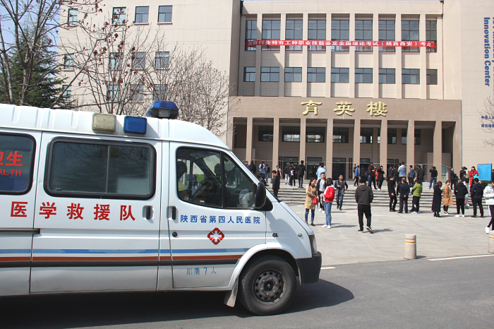 考试当天,监考及考务人员统一进行了专门的考前培训,医护人员和车辆在考场设立了医疗救助点,提高了考试效率,降低了考试期间的意外风险,确保了考试顺利进行。