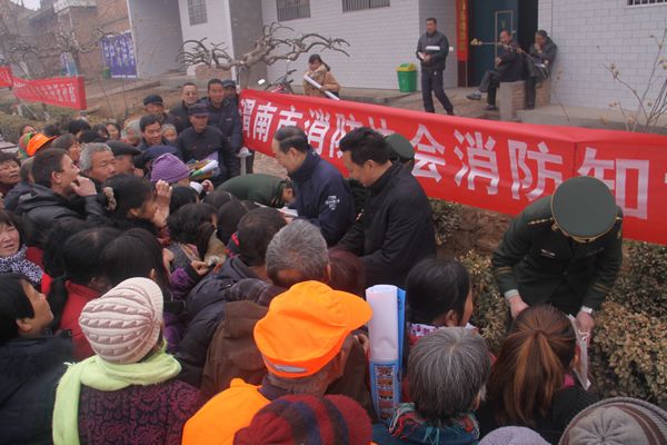 此次宣传活动,省消防协会领导高度重视,与渭南市消防协会精心准备了上万份宣传材料,并由市消防支队配合挑选13名业务素质精湛、语言表达能力较强的官兵担任宣传员。在合阳县王村镇北王村设置宣传咨询点,现场将《农村消费500问》、“消防卡通扑克”、《社会单位消防培训教材》等宣传材料向广大农民朋友免费发送,宣传员对群众现场提出的各种疑问进行了耐心的解答,受到了广大农民朋友的称赞。