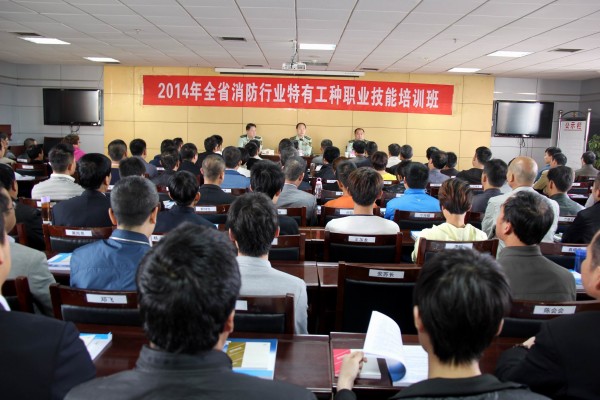 卞建峰秘书长首先对全体培训人员的到来表示热烈欢迎,并围绕培训的目的、意义和培训后在实际操作使用中需要注意的问题,结合个人多年从事消防工作经验,向全体培训学员详细介绍了全省消防行业特有工种职业技能培训情况,分析持有消防职业资格证书人员所面临的机遇以及在社会消防安全工作中所承担的艰巨任务。