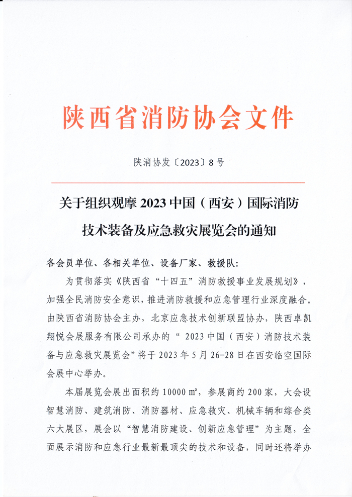 关于组织观摩2023中国(西安)国际消防技术装备及应急救灾展览会的通知