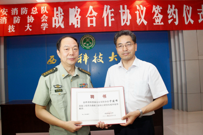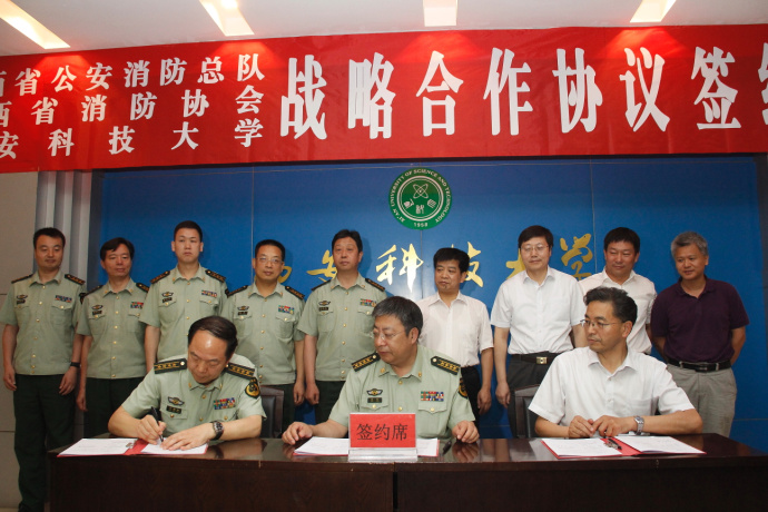 7月11日上午,陕西省公安消防总队、陕西省消防协会和西安科技大学三方战略合作协议签约仪式在西安科技大学雁塔校区举行。省公安消防总队总队长周详、副政委王春生、防火部部长张明,陕西省消防协会秘书长卞建峰,西安科技大学校长杨更社、副校长李树刚等领导出席,三方相关人员参加了签约仪式。签约仪式由西安科技大学副校长张金锁主持。上午10时,仪式正式开始。