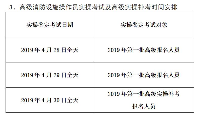 2019年428日(星期)至430日(星期二)组织高级消防设施操作员实操鉴定考试和实操补考。