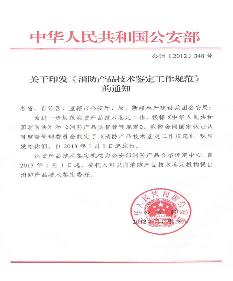 关于印发《消防产品技术鉴定工作规范》的通知