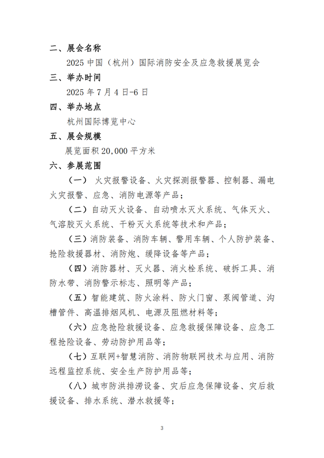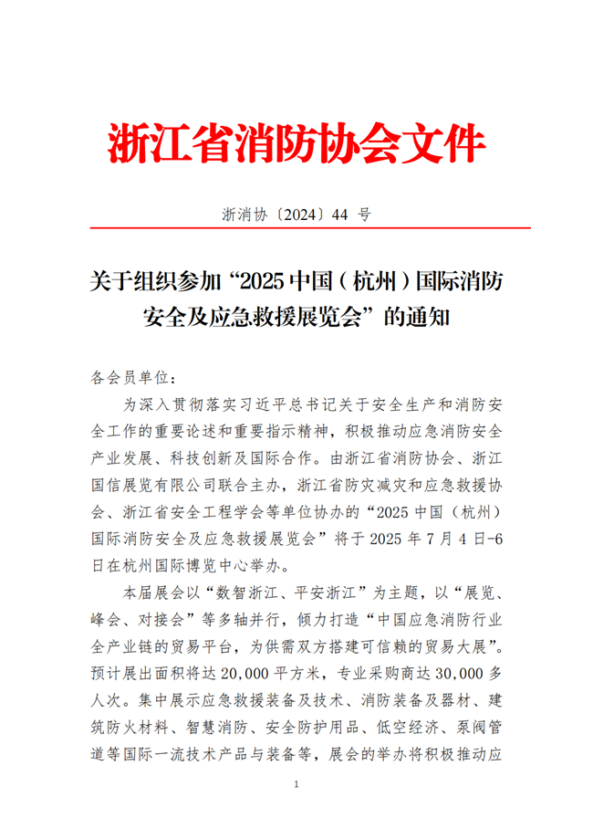 现将浙江省消防协会《关于组织参加“2025 中国(杭州)国际消防安全及应急救援展览会”的通知》转发你们,望各单位结合情况自愿报名。