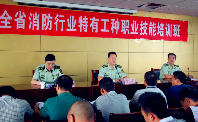培训部主任何生哲结合个人多年来从事消防工作经验,向全体培训学员详细介绍了全省消防行业特有工种职业技能培训情况,分析持有消防职业资格证书人员所面临的机遇。针对培训班“标准高、要求严、时间紧、内容多”的特点,培训部主任何生哲对全体培训学员提出了三点要求:一是要求大家充分认识参加此次培训的必要性和重要性,端正学习态度,集中精力,排除干扰,把握此次培训机会;二是加强沟通交流,相互学习借鉴,熟练掌握各类消防设施设备的操作方法,初步达到初级建(构)筑物消防员的要求;三是在管理中要实行半军事化管理,全体学员要服从管理,严格遵守培训班各项管理规定,坚持请销假制度,自觉维护课堂纪律,争取以优异的成绩圆满结业。