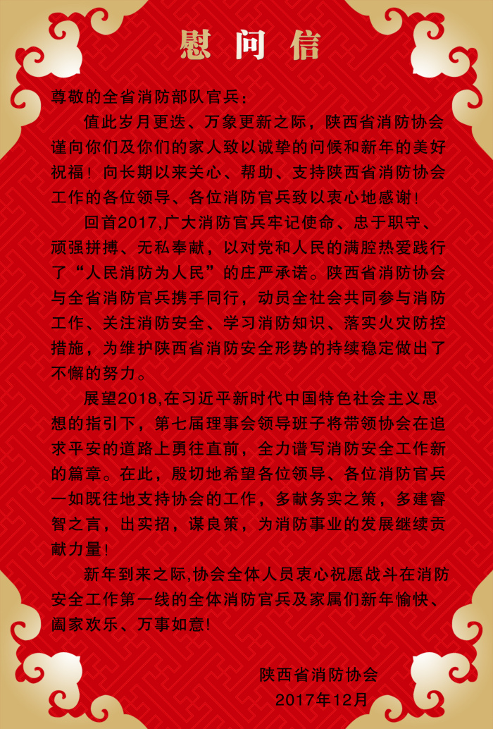 致全省消防部队官兵、全体会员单位、各社会单位的慰问信