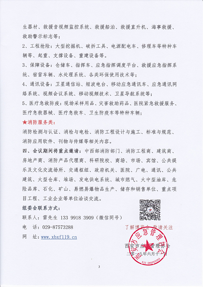 由西安市应急管理协会主办、省市工信、应急办、民政局、地震局支持,陕西英杰会展服务有限公司承办的“2018中国(西安)消防安全产品与应急救援装备博览会”,将于2018年8月24日-26日在西安曲江国际会展中心隆重举行,大会主题为“智慧消防、创新应用”。