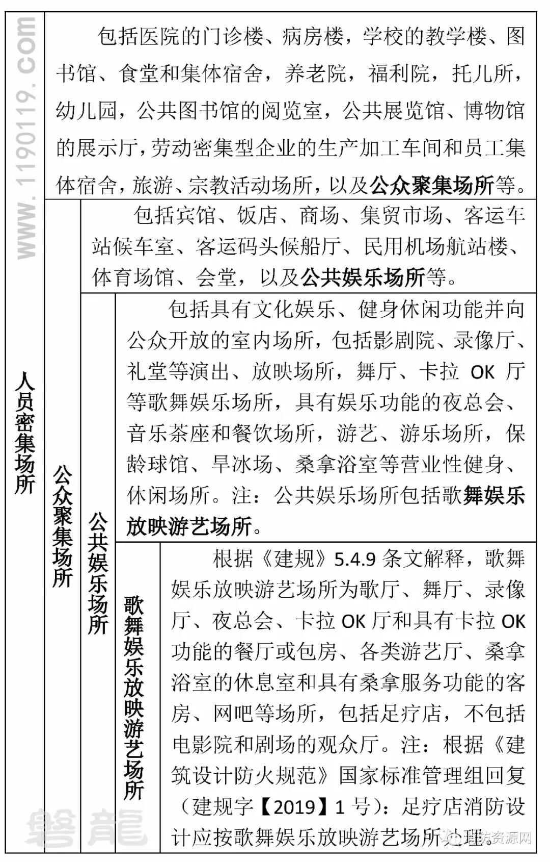 注:根据《建筑设计防火规范》国家标准管理组回复(建规字【2019】1号):考虑足疗店的业态特点与桑拿浴室休息室或具有桑拿服务功能的客房基本相同,足疗店消防设计应按歌舞娱乐放映游艺场所处理。