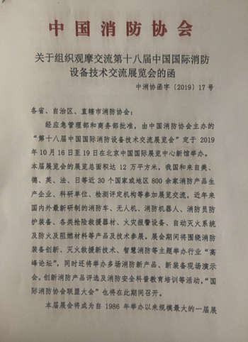 附件: 1.《关于组织观摩交流第十八届中国国际消防设备技术交流展览会的函》