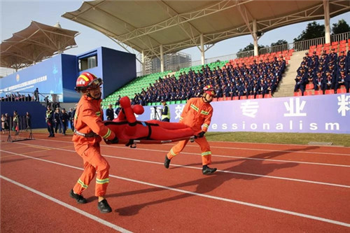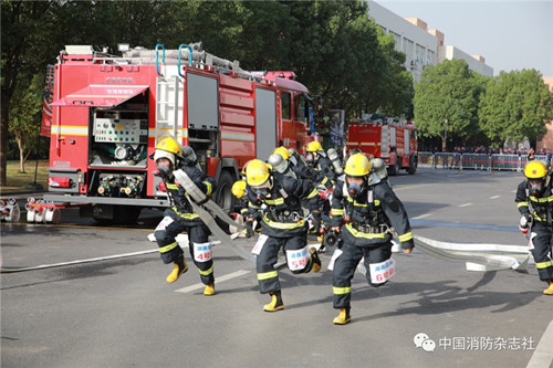 据了解,在为期4天的对抗比武活动中,来自全国31个消防救援总队的899名指战员将同场竞技,参加60米肩梯登楼、枪炮协同灭火、楼层火灾内攻、纵深灭火救人等8个项目的比赛。
