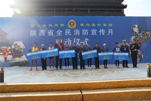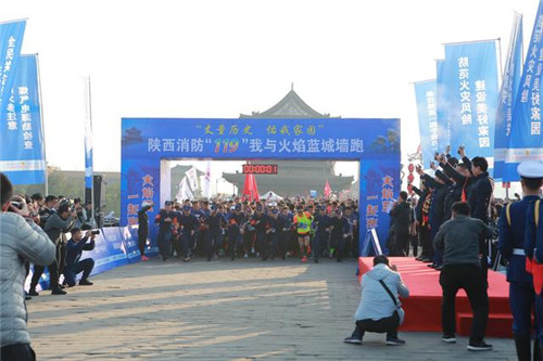 11月3日上午,阳光灿烂,西安市永宁门城墙景区(南门)锣鼓喧天,人声鼎沸,热闹非凡。陕西省全民消防宣传月启动仪式暨“丈量历史 佑我家园”—我与火焰蓝11.9公里城墙跑活动在这里隆重举行,叩响了今年119 “防范火灾风险 建设美好家园 ”全民消防宣传月活动的主题。