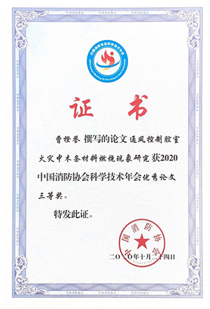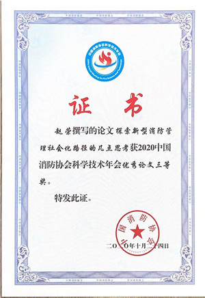 2020年12月,中国消防协会宣布了2020年中国消防协会优秀论文征集活动评审结果。我会报送的论文共有10篇获奖,其中一等奖2篇,二等奖2篇,三等奖6篇。