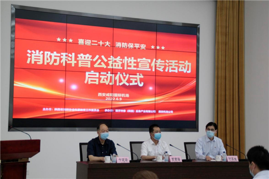 6月9日,由陕西省消防协会主办的“喜迎二十大、消防保平安”主题公益性消防科普宣传活动启动仪式在西安咸阳国际机场举行,活动以在全省范围内广泛开展消防安全科普巡回宣讲形式,给即将召开的党的二十大营造平安祥和的社会氛围。
