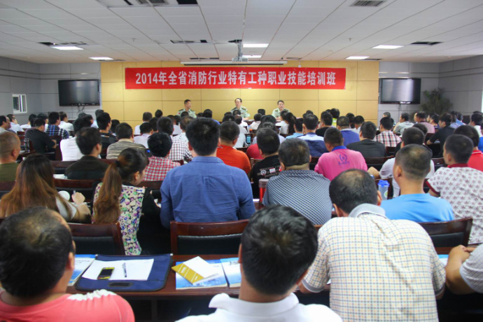 为全面提升消防控制室操作人员的整体素质,强化社会单位的火灾防控能力,9月10日上午,2014年全省第九期消防行业特有工种职业技能培训班在总队培训基地开训,省消防协会秘书长卞建峰以及来自全省各地从事消防控制室操作的197名学员参加了开训典礼。开训仪式由培训基地教研室主任王勃主持。